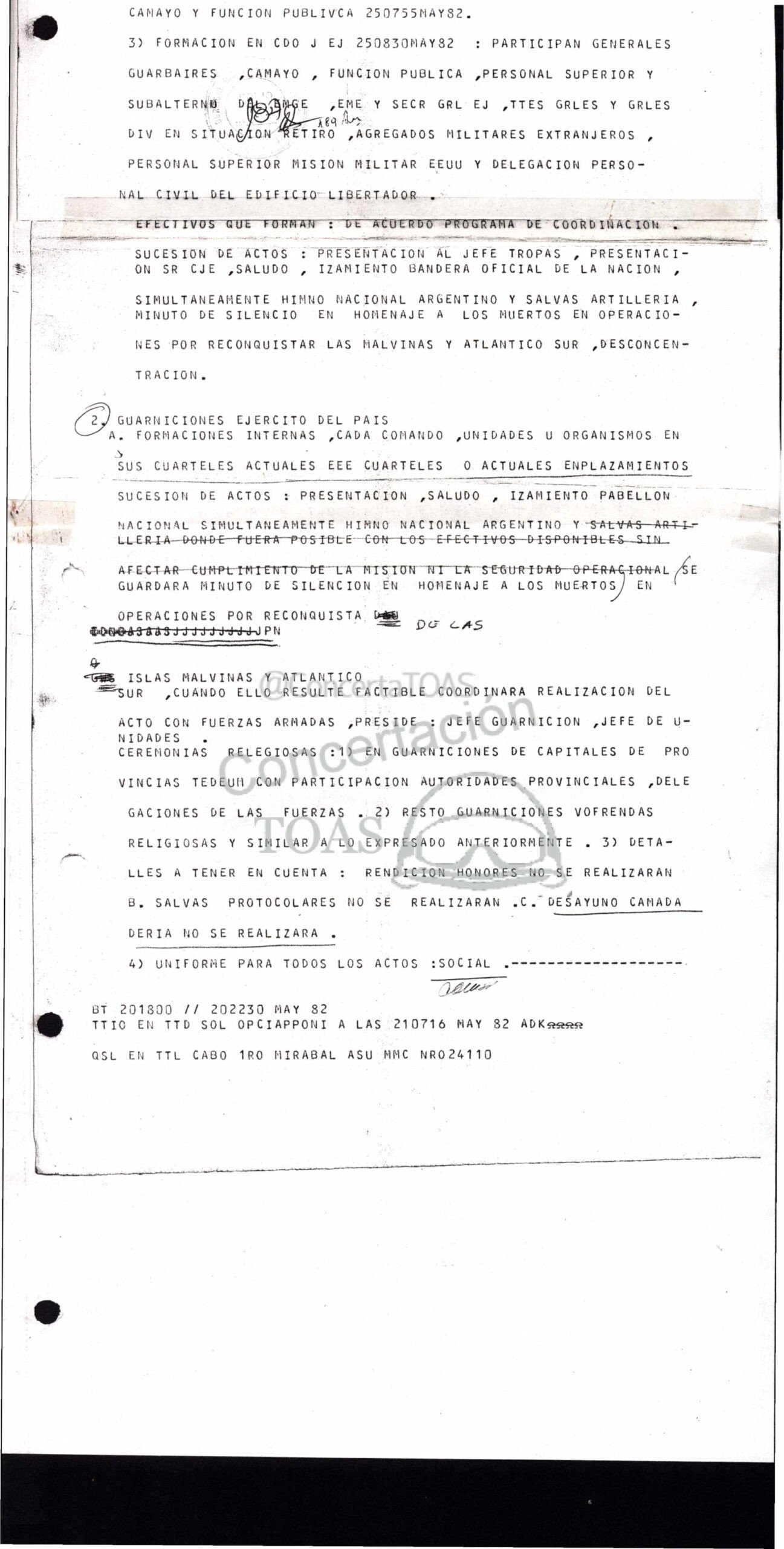 Ss 3) FORMACION EN CDO J EJ 250830MAY82 : PARTICIPAN GENERALES