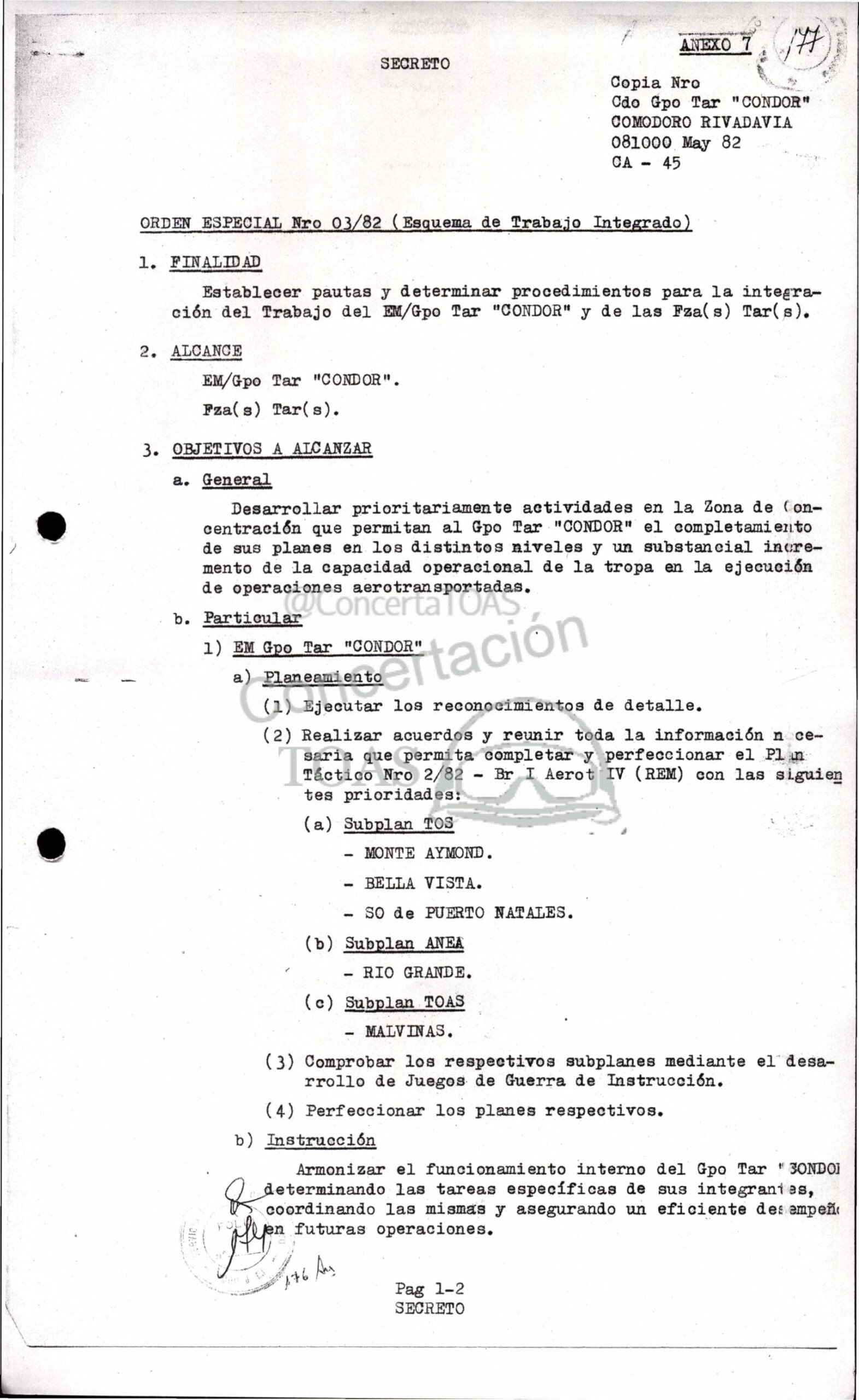 ORDEN ESPECIAL Nro 03/82 (Esquema de Trabajo Integrado)