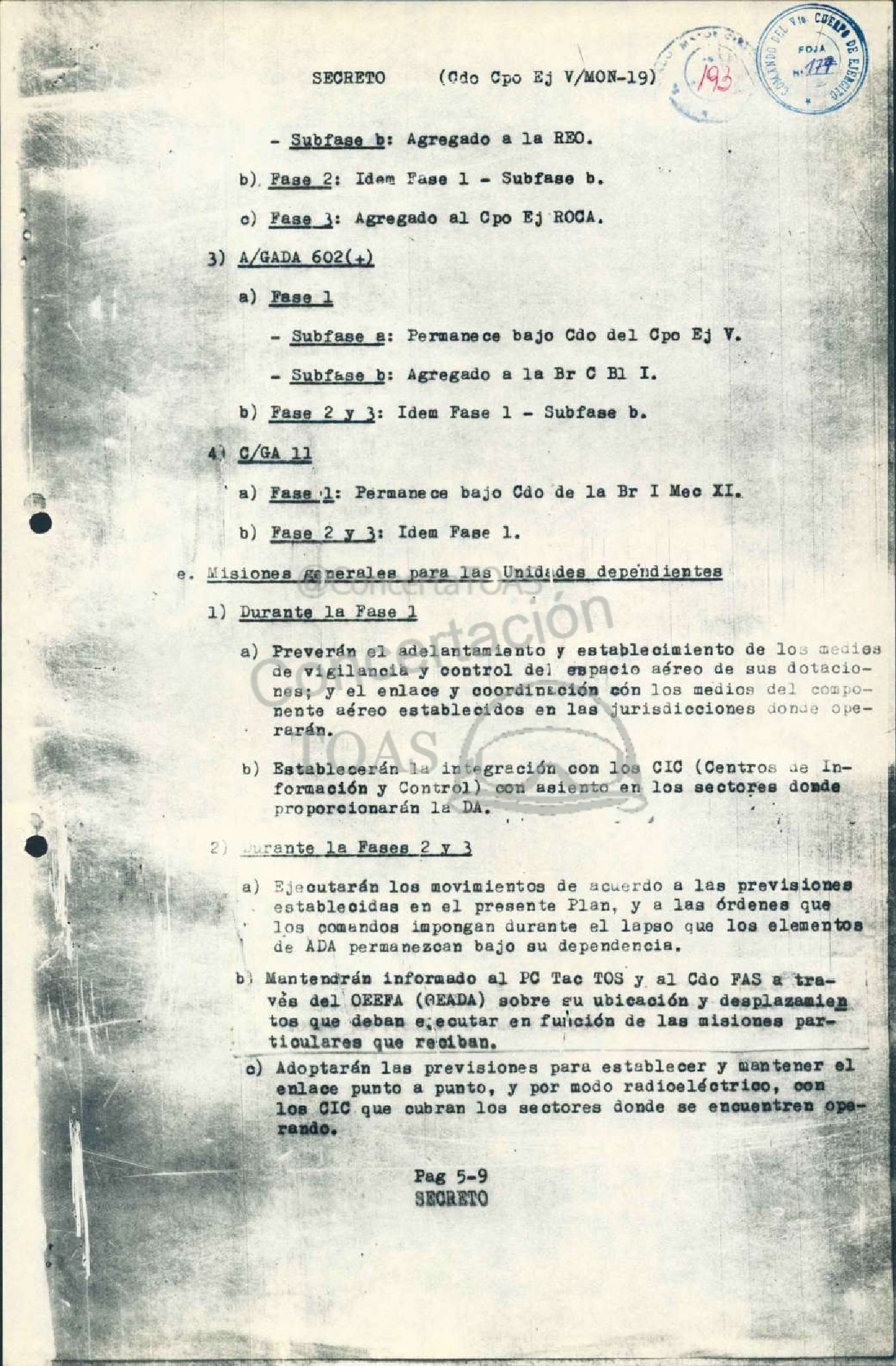 ‘ a) Fase 1: Permanece bajo Cdo de la Br 1 Meo XI.