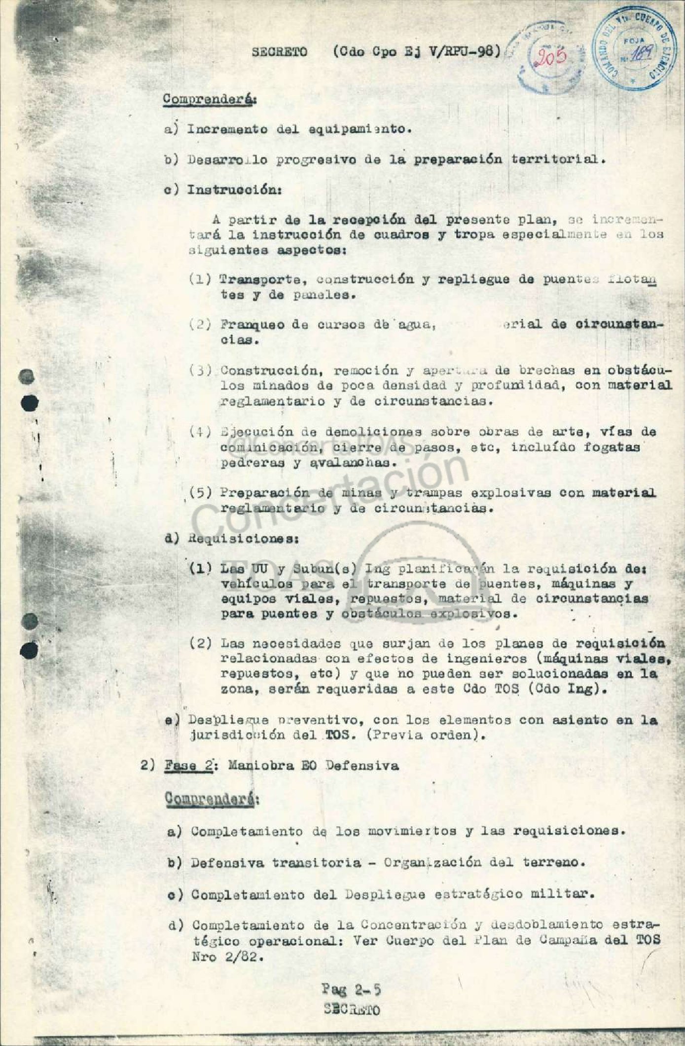 A 0) Completaniento del Despliemzue estratógico militar.