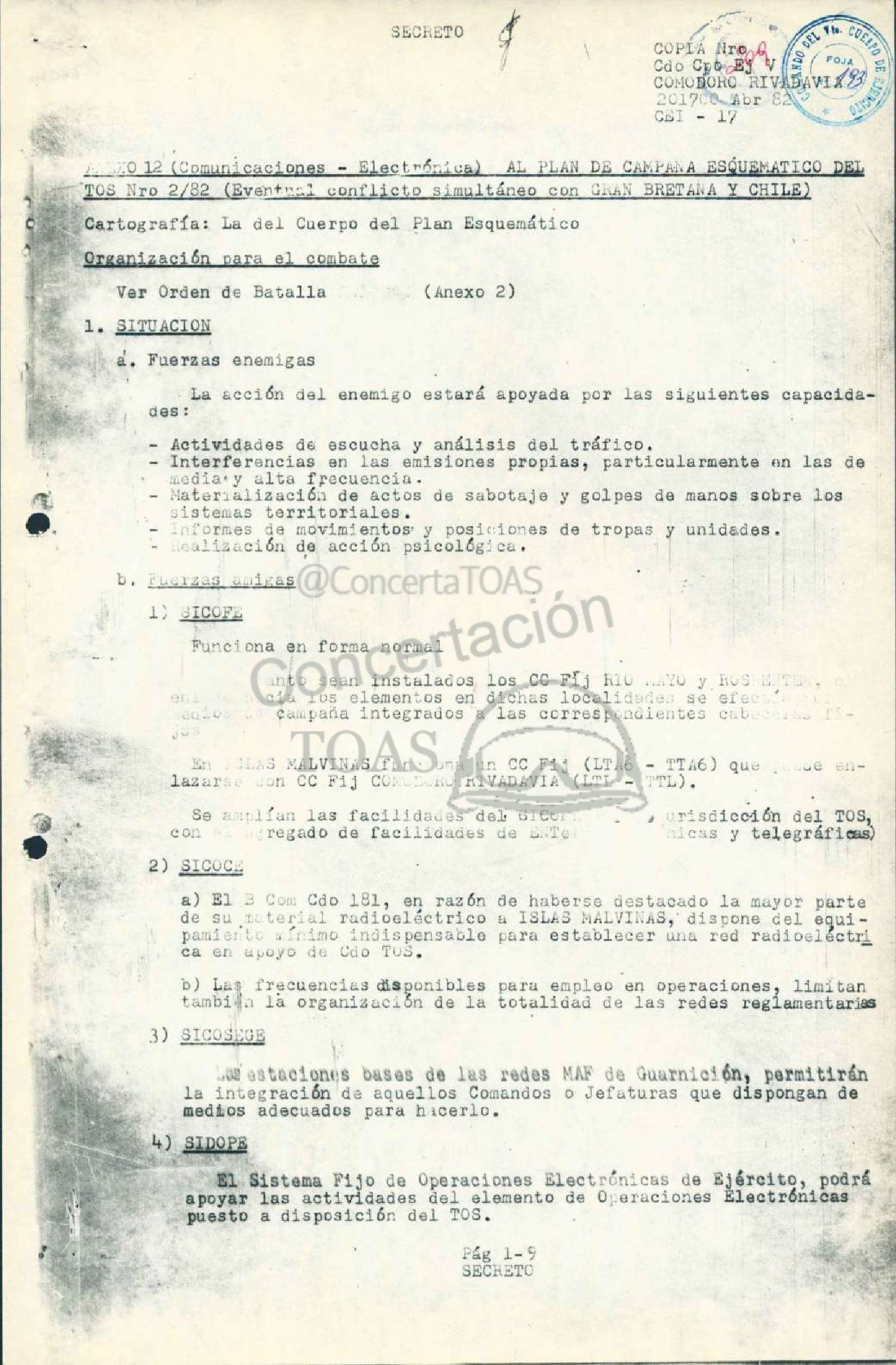 radioeléctrico 4 1SLAS MALVINAS, dispone del equi-