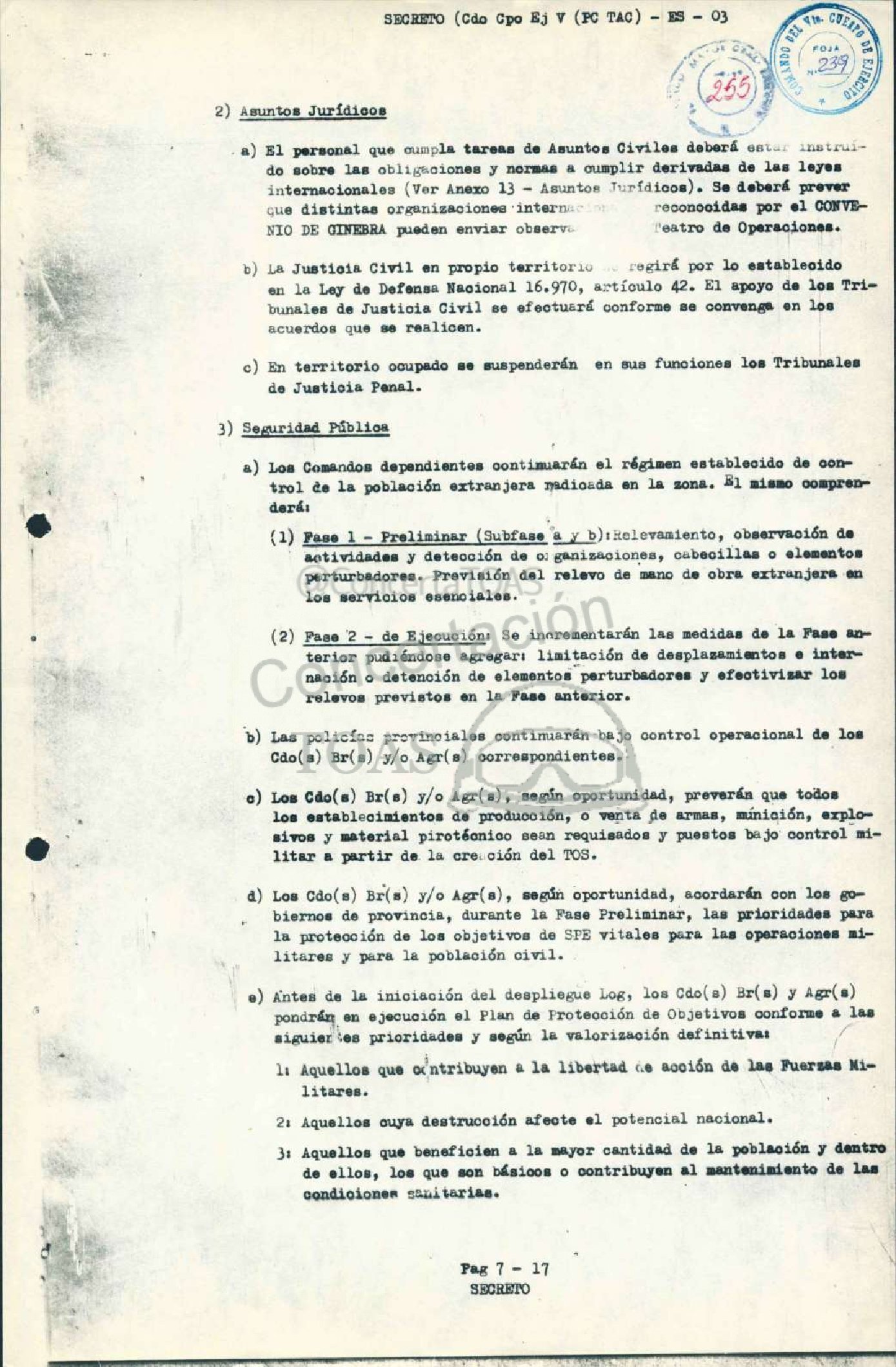 en la Ley de Defensa Nacional 16.970, avtículo 42. El apoyo de los Tri-