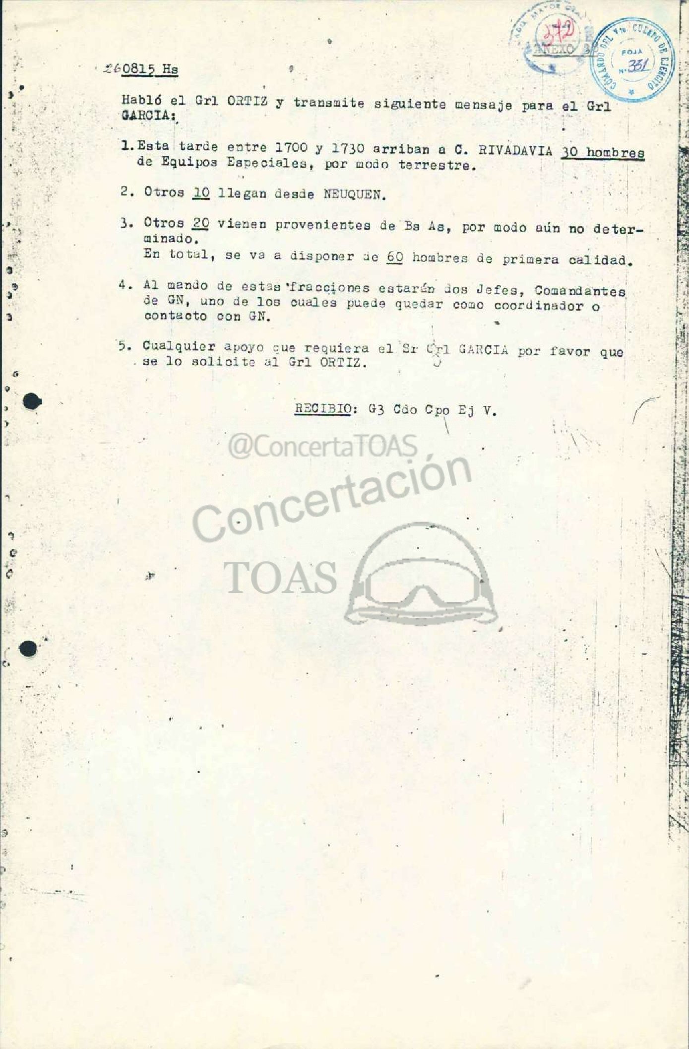 1.Esta tarde entre 1700 y 1730 arriban a C. RIVADAVIA 30 hombres