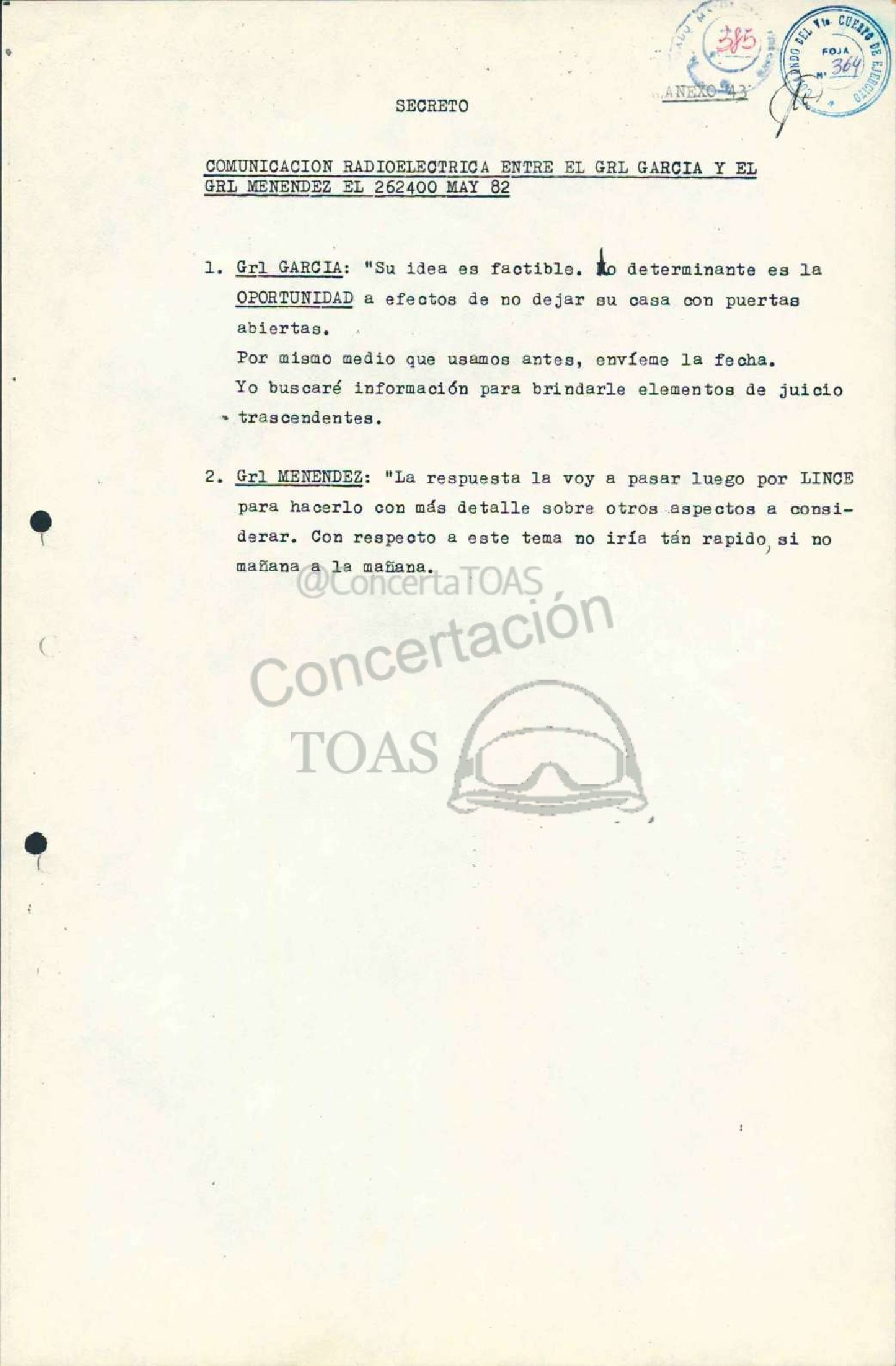 COMUNICACION RADIOELEOTRICA ENTRE EL GRL GARCIA Y EL