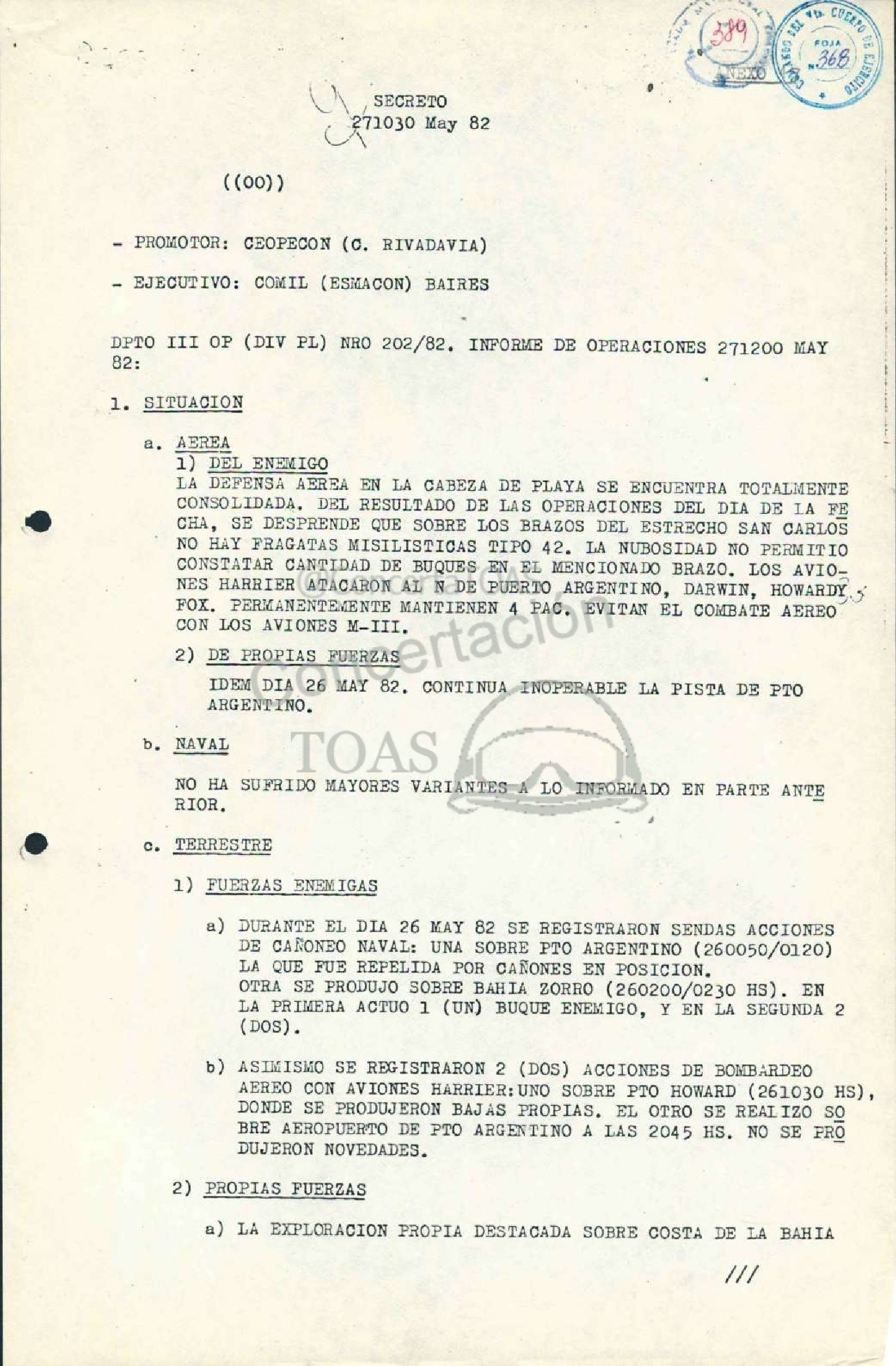 DPTO 111 OP (DIV PL) NRO 202/82, INFORME DE OPERACIONES 271200 MAY