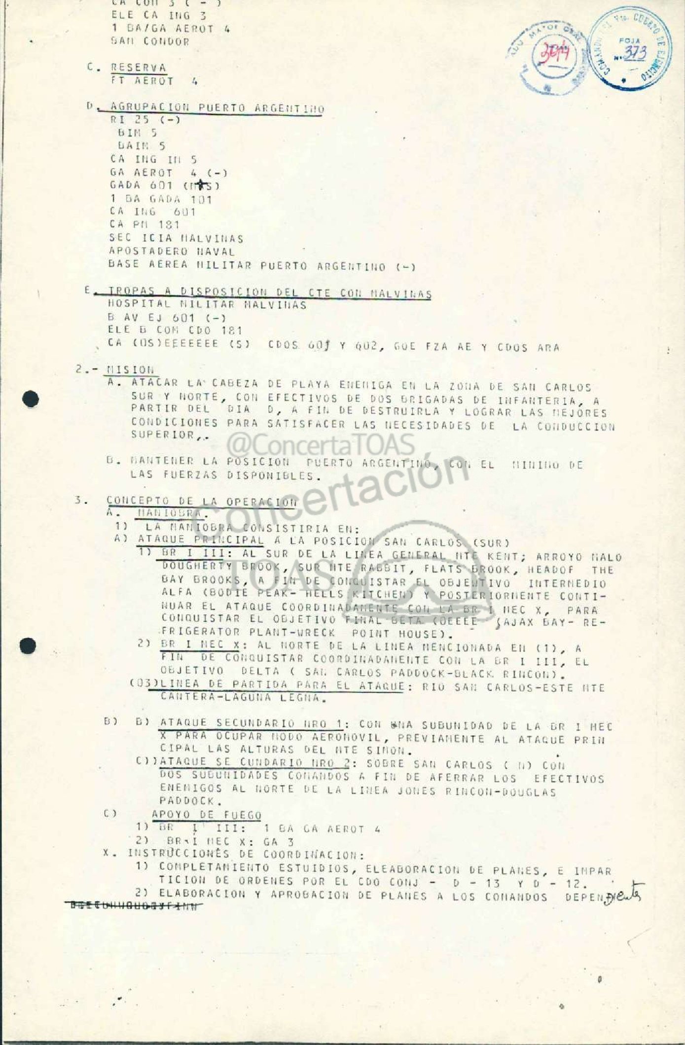 A. ATACAR Lhr CABEZA DE PLAYA ENEMIGA El LA ZONA DE SAN CARLOS