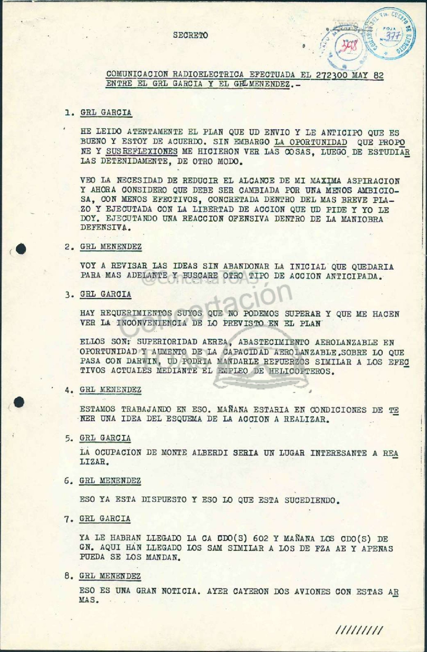 COMUNICACION RADIOELECTRICA EFECTUADA EL 272300 MAY 82