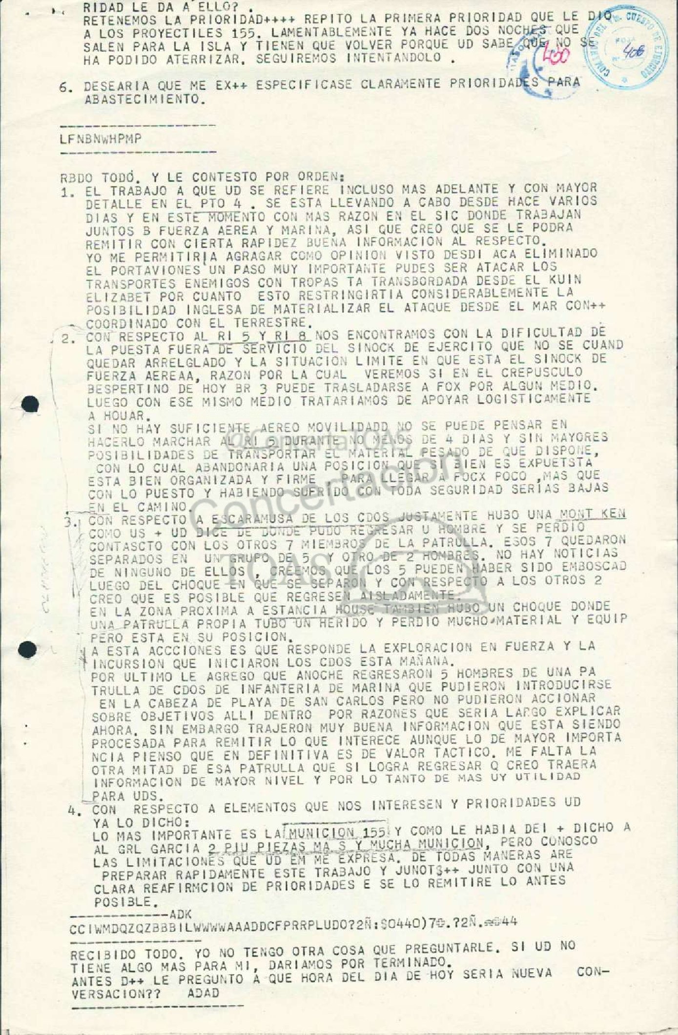 Diario de Guerra Comando del Vto Cuerpo de Ejercito Anexos Folio 430