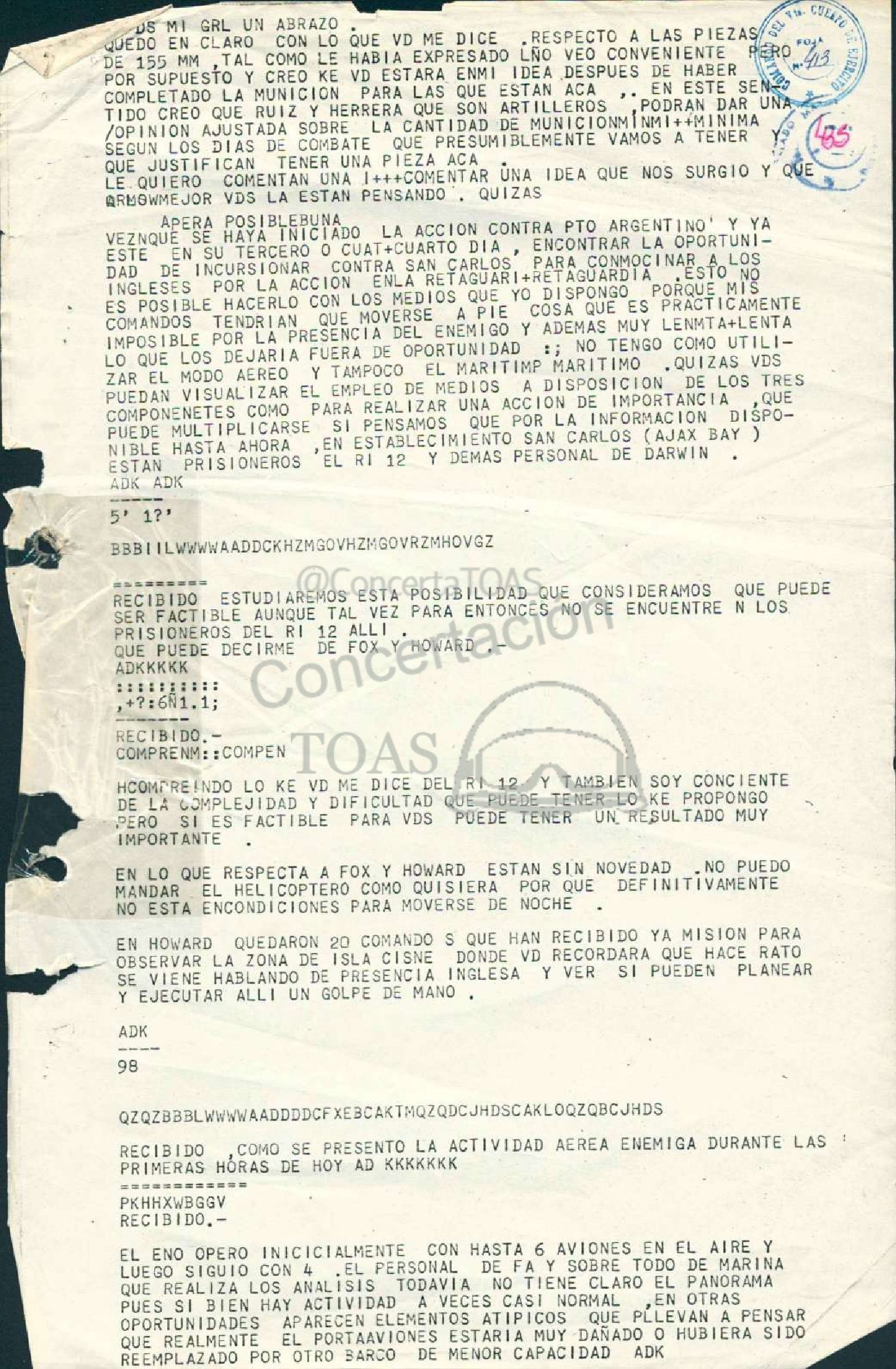 RECIBIDO COMO SE PRESENTO LA ACTIVIDAD AEREA ENEMIGA DURANTE LAS