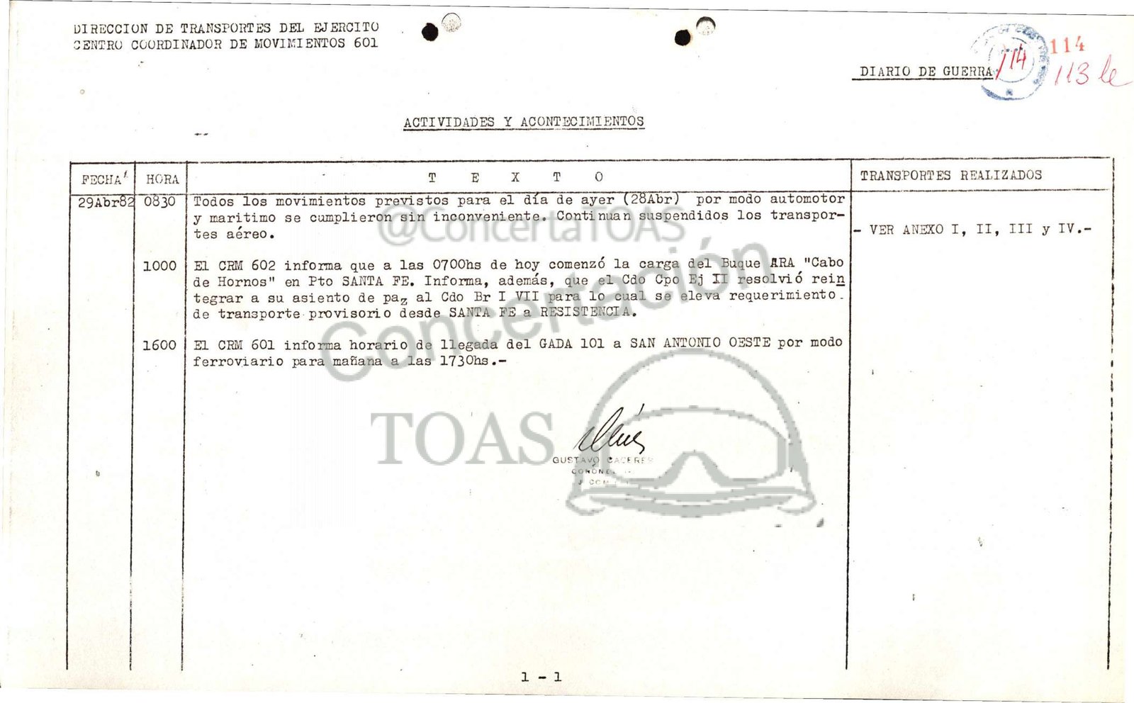 de Hornos” en Pto SANTA FE. Informa, además, que el Cdo Cpo Ej II resolvió rein
