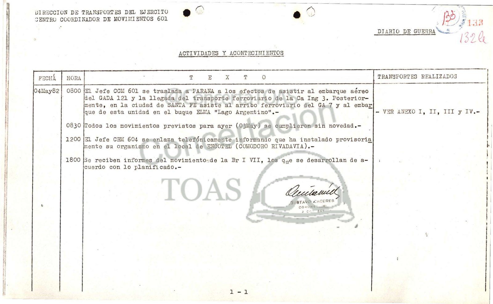 El Jefe CRM 604 se enlaza telefónicamente informando que ha instalado provisoria