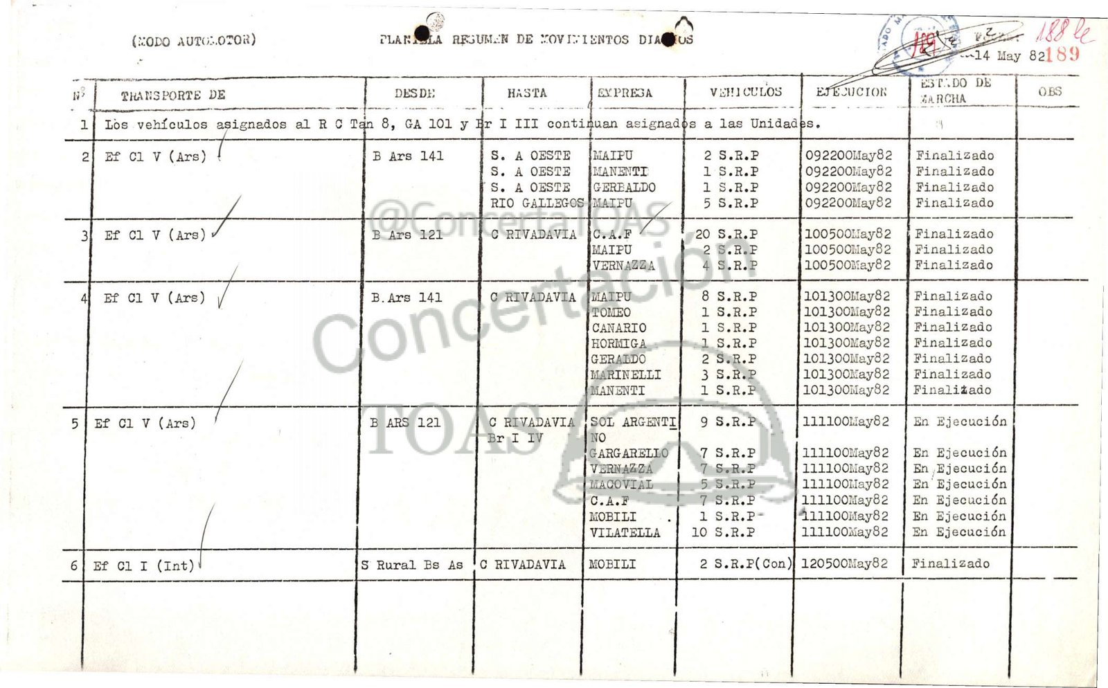 8, GA 101 y Hr I III contiñuan asignadés a las Unidadp