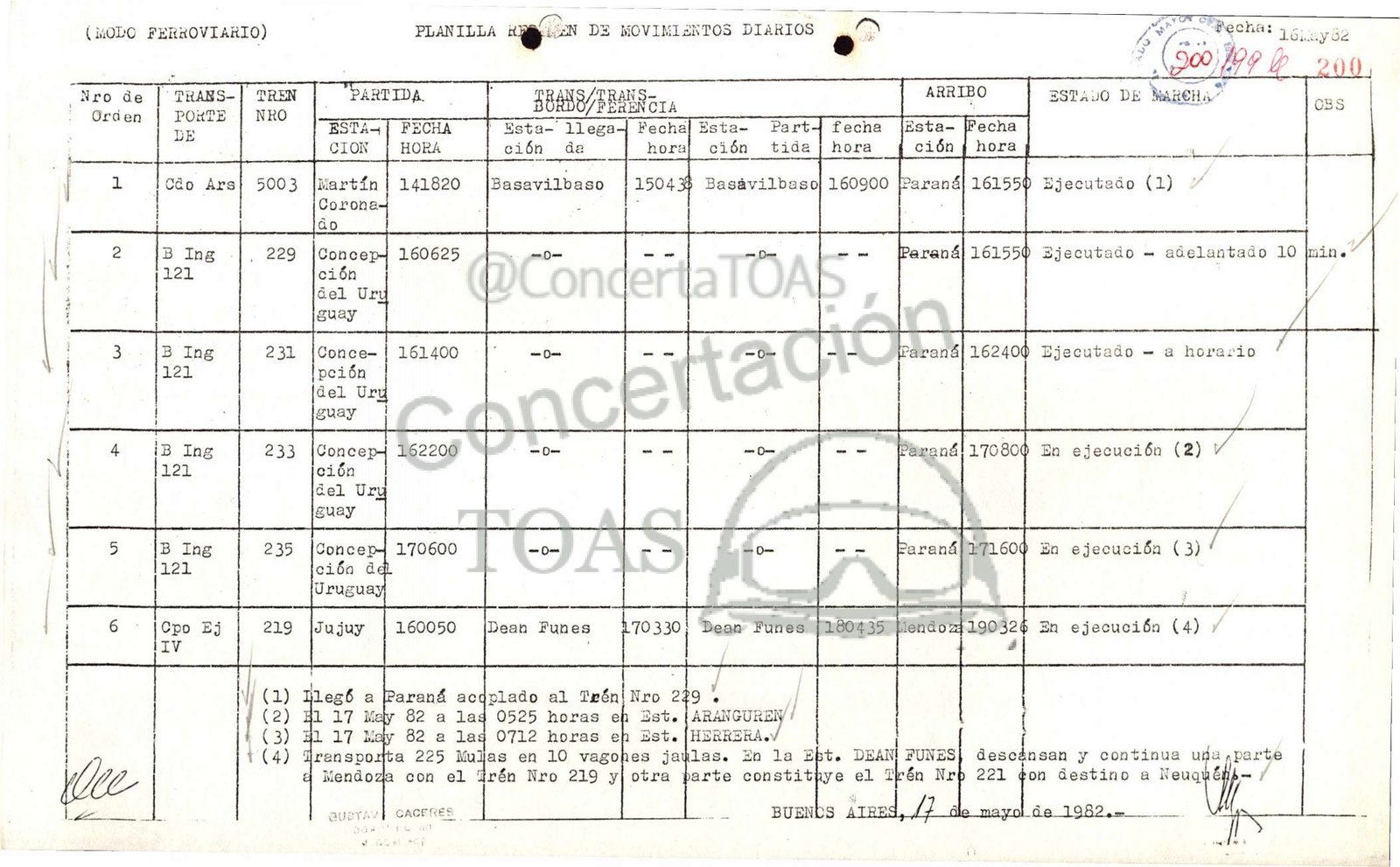 | (2) 41 17 May 82 a lag 0525 horas eh Este [ARANGUREN /