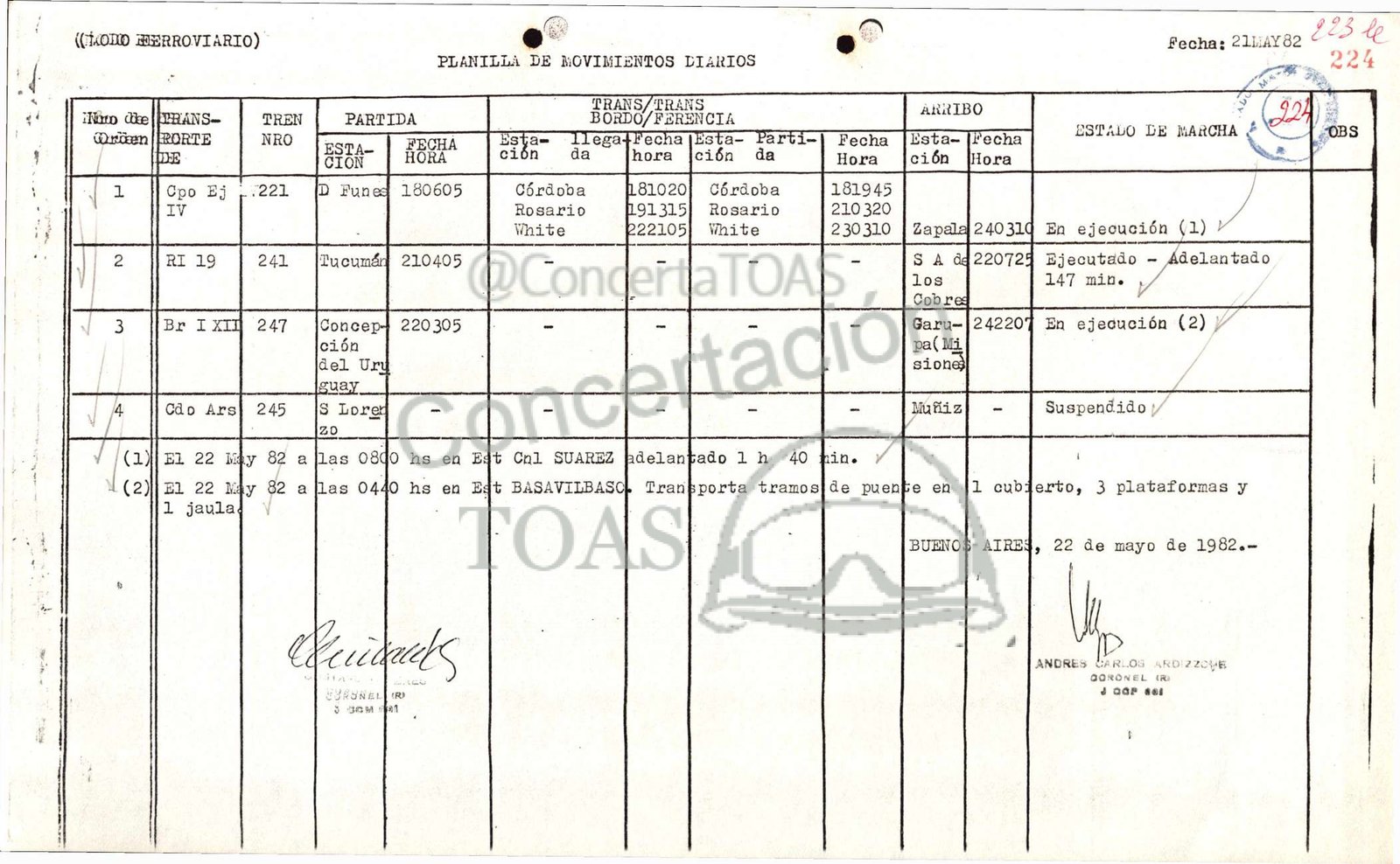 ‘ pa) El 22 M4y 82 a [las o8do hs en Edt Cnl1 SUAREZ húelantado 1h 40 kin. y