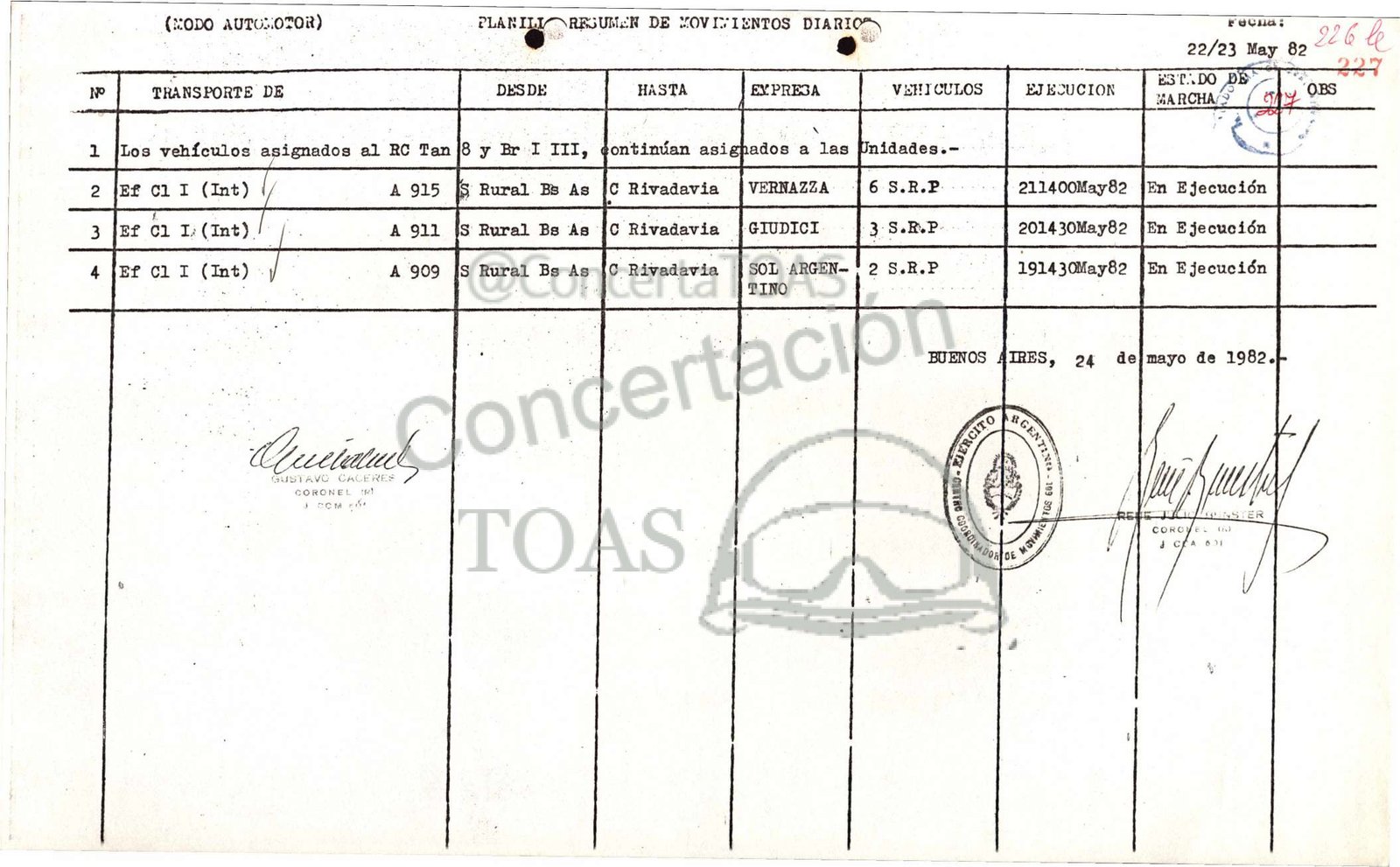 Ef C1 1 (Int) A 909 |S Rural Bs As |C Rivadavia | SOL ARGEN-¡ 2 S.R.P 191430May82 [En Ejecución