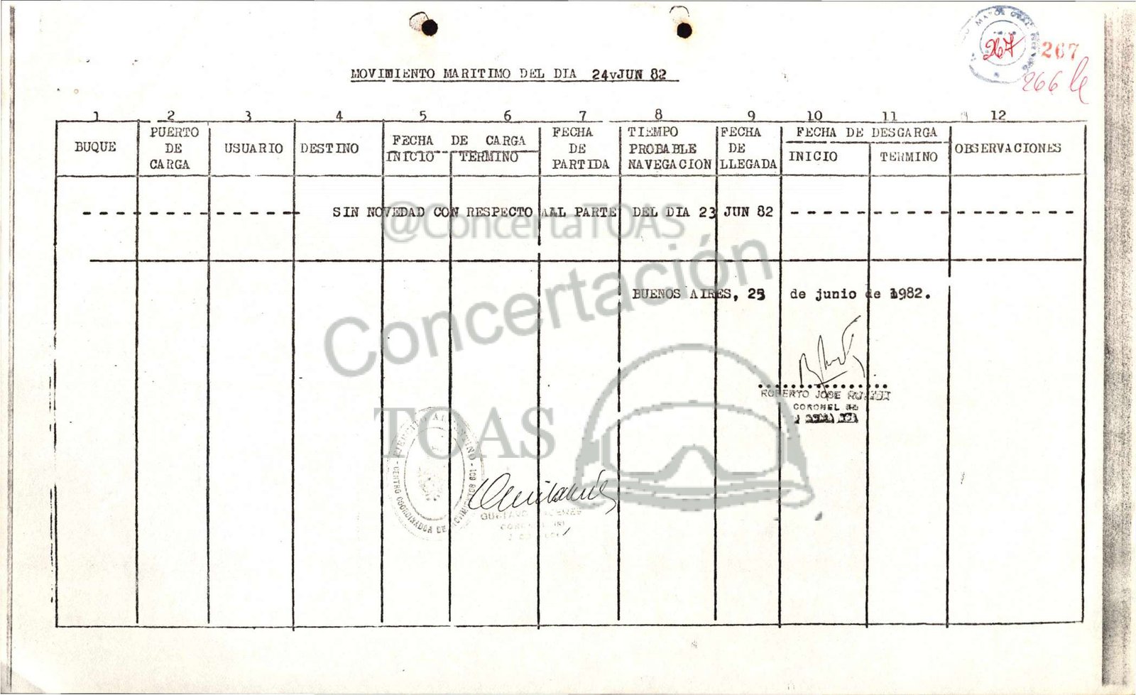 MOVIMIENTO MARITIMO DEL DIA 24vJUN 82 y y