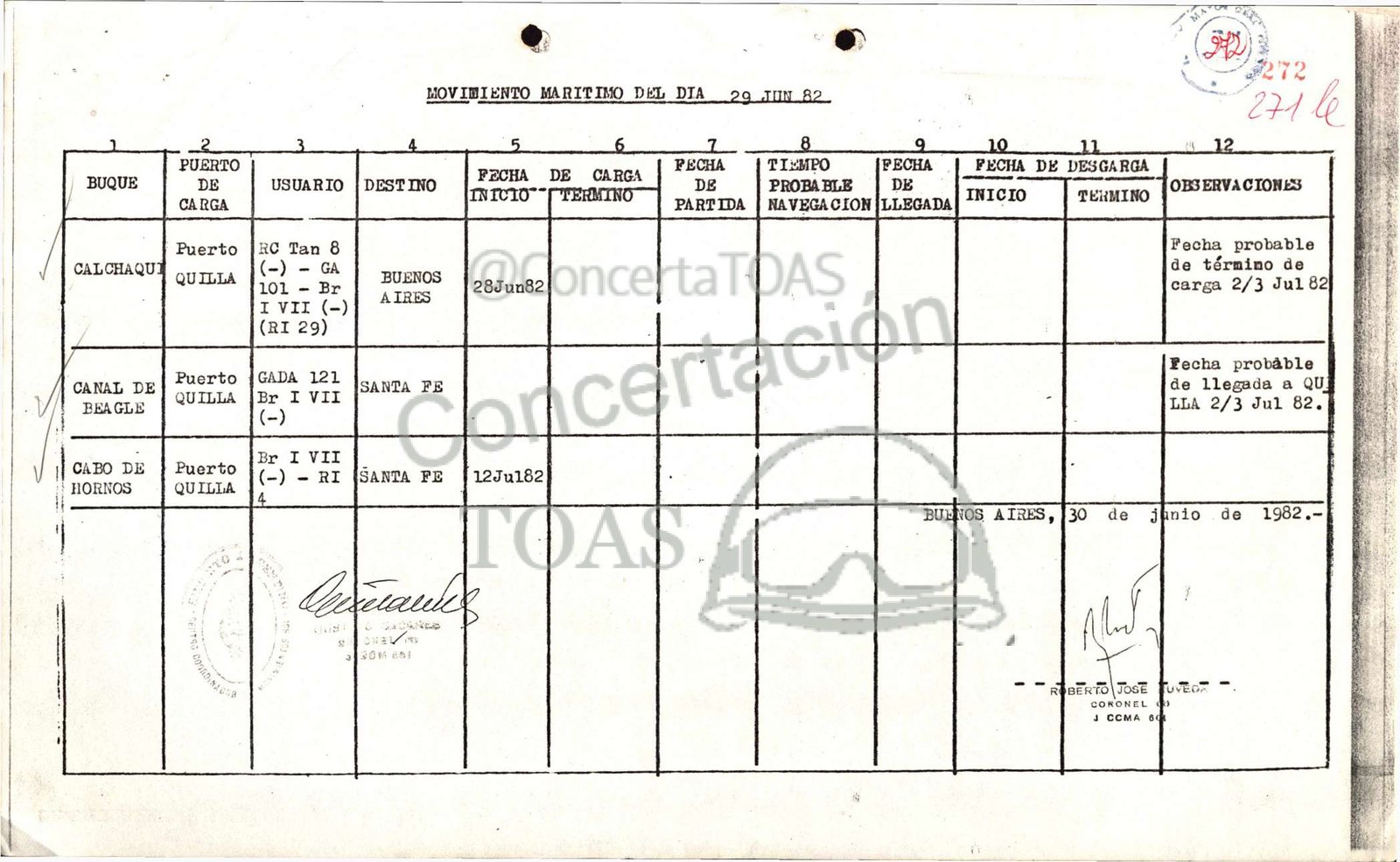 MOVIMIENTO MARITIMO DEL DIA _ 29 JUN 82