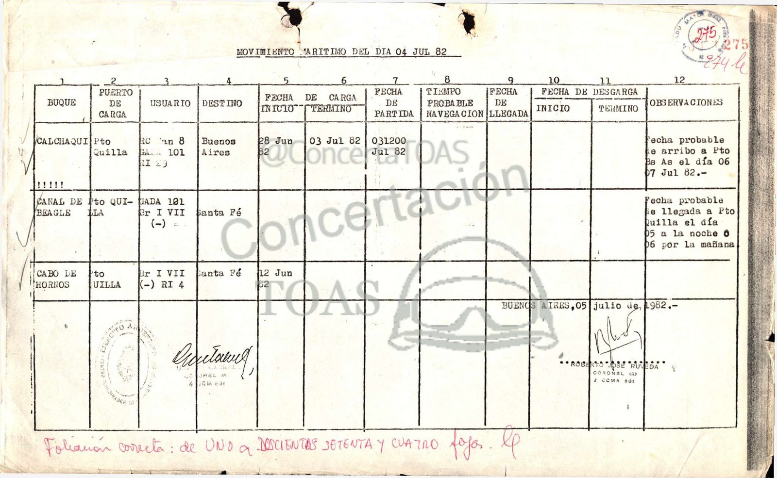 MOVIMIENTO -ARITIMO DEL DIA 04 JUL 82