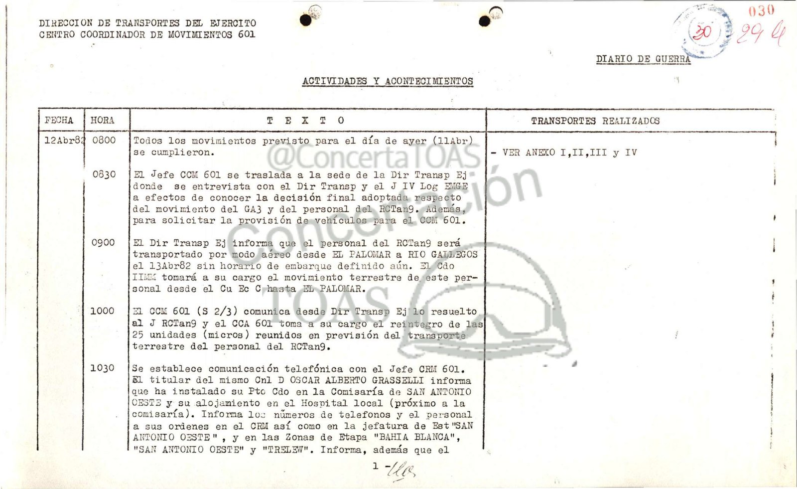 el 13Abr82 sin horario de embarque definido aún. El Cdo