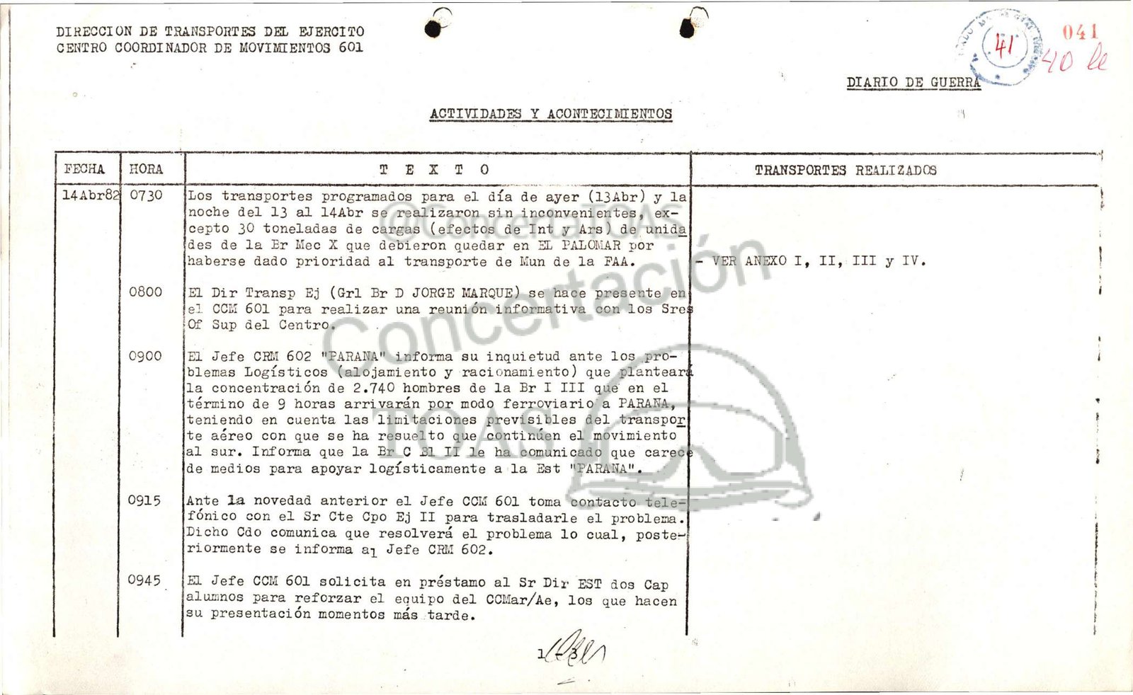 0900 El Jefe CRM 602 “PARANA” informa su inquietud ante los pro-