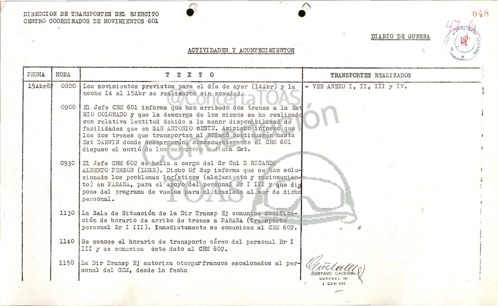 DIRECCION DE TRANSPORTES DEL EJERCITO ó e 048