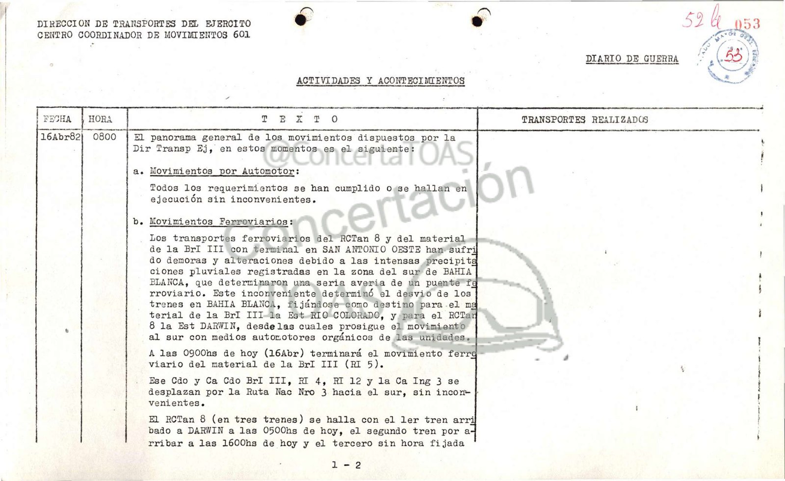 Dir Transp Ej, en estos momentos es el siguiente: