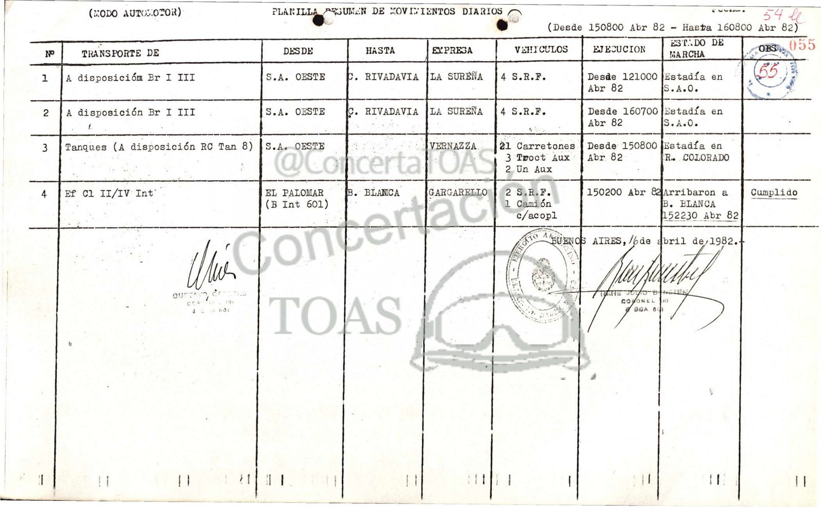 (Desde 150800 Abr 82 – Hasta 160800 die 82)