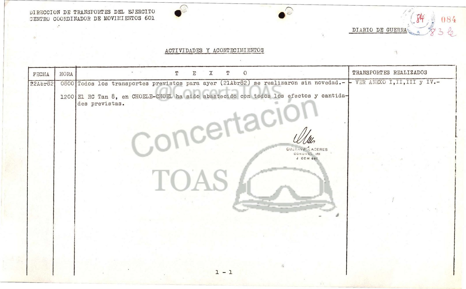 92Abr82| 0800|To¿os los transportes previstos para ayer (214br82) se realizaron sin novedad.-