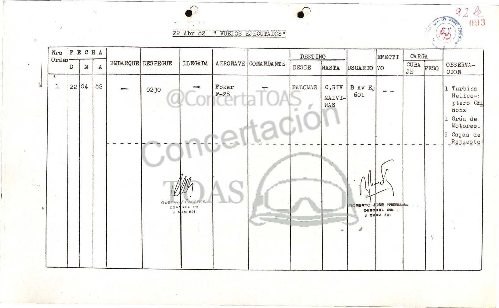 22 Abr 82 —” VUELOS EJECUTADOS”
