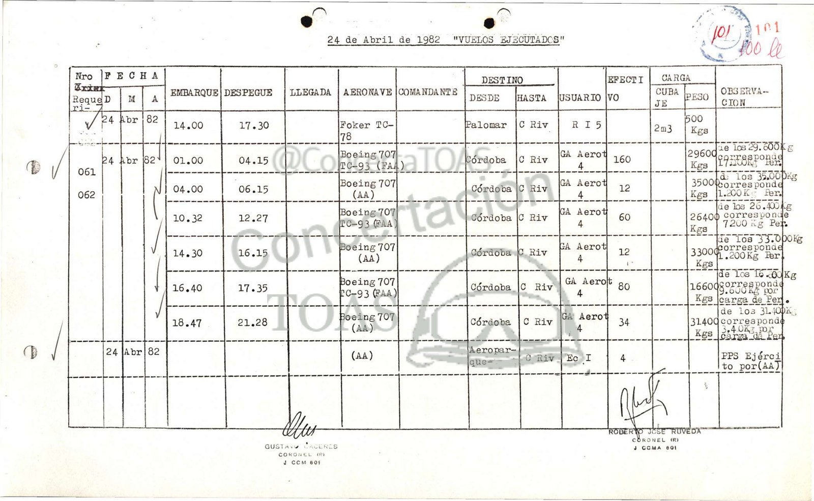 24 de Abril de 1982 “VUELOS EJECUTADOS” LA