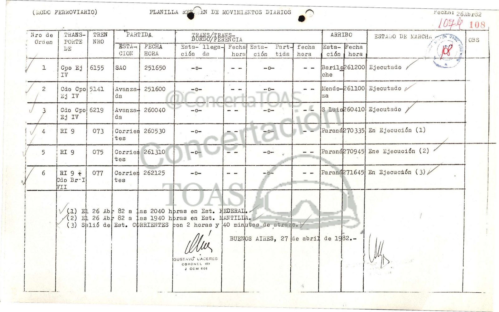 (2) El 26 Abr 82 a las 1940 hbras en Est. HANTIL