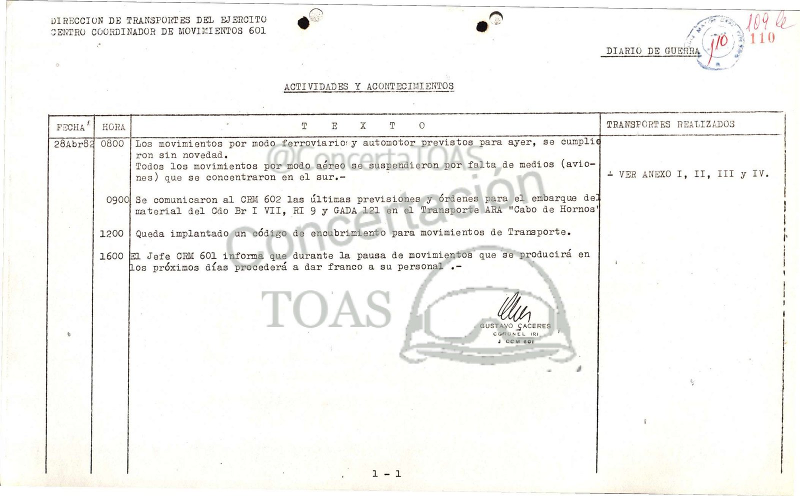 28Abr84 0800 | Los movimientos por modo ferroviario: y automotor previstos para ayer, se cumpli