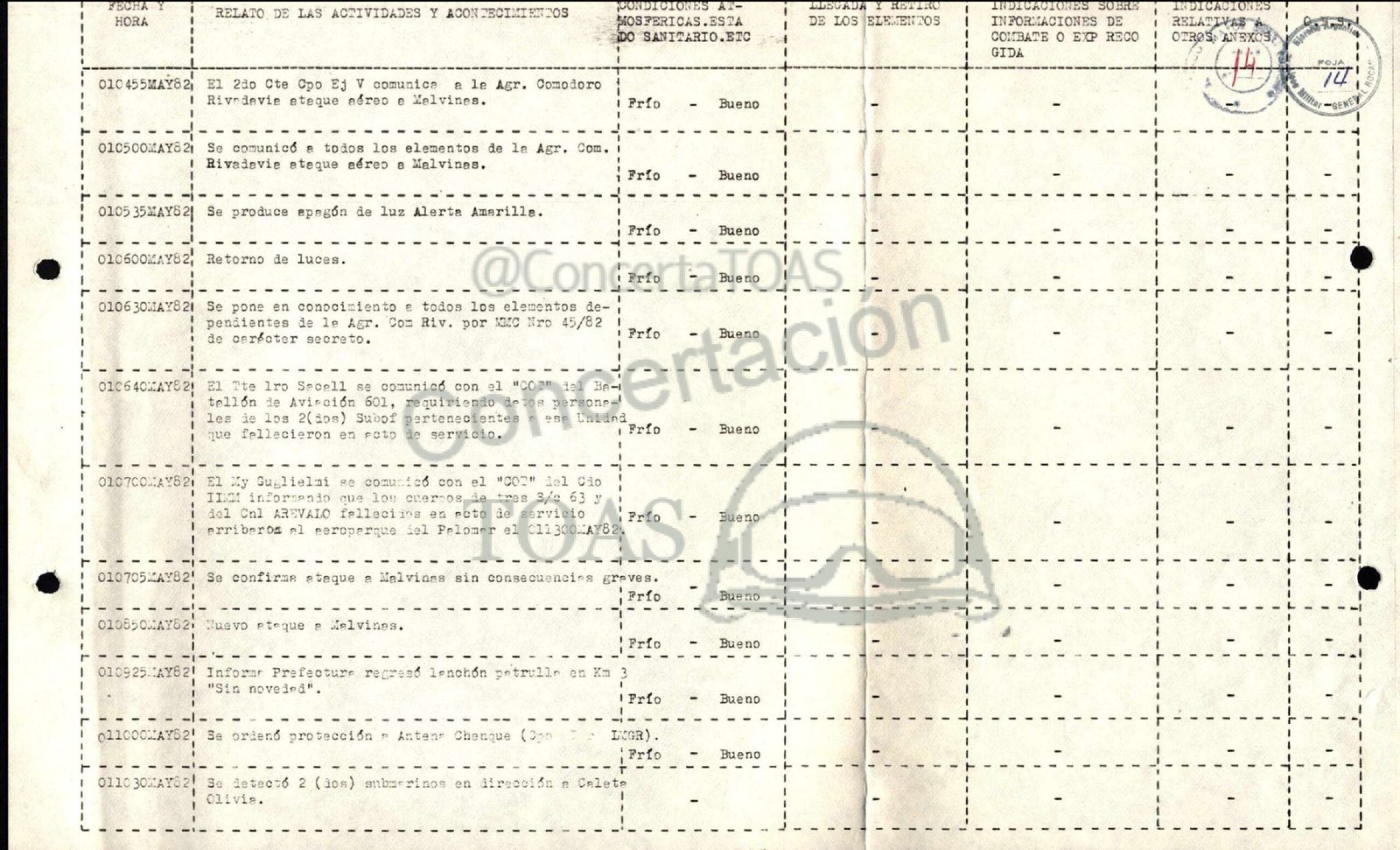 O10455MAY82 El 240 Cte Cpo Ej Y comunica a le Agr. Comodoro | | 1 1