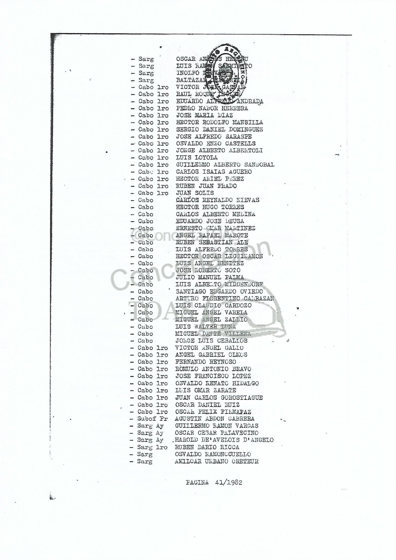 – Suboficiales: Sarg 1ro ANTONIO GABINO BRACAMONTE