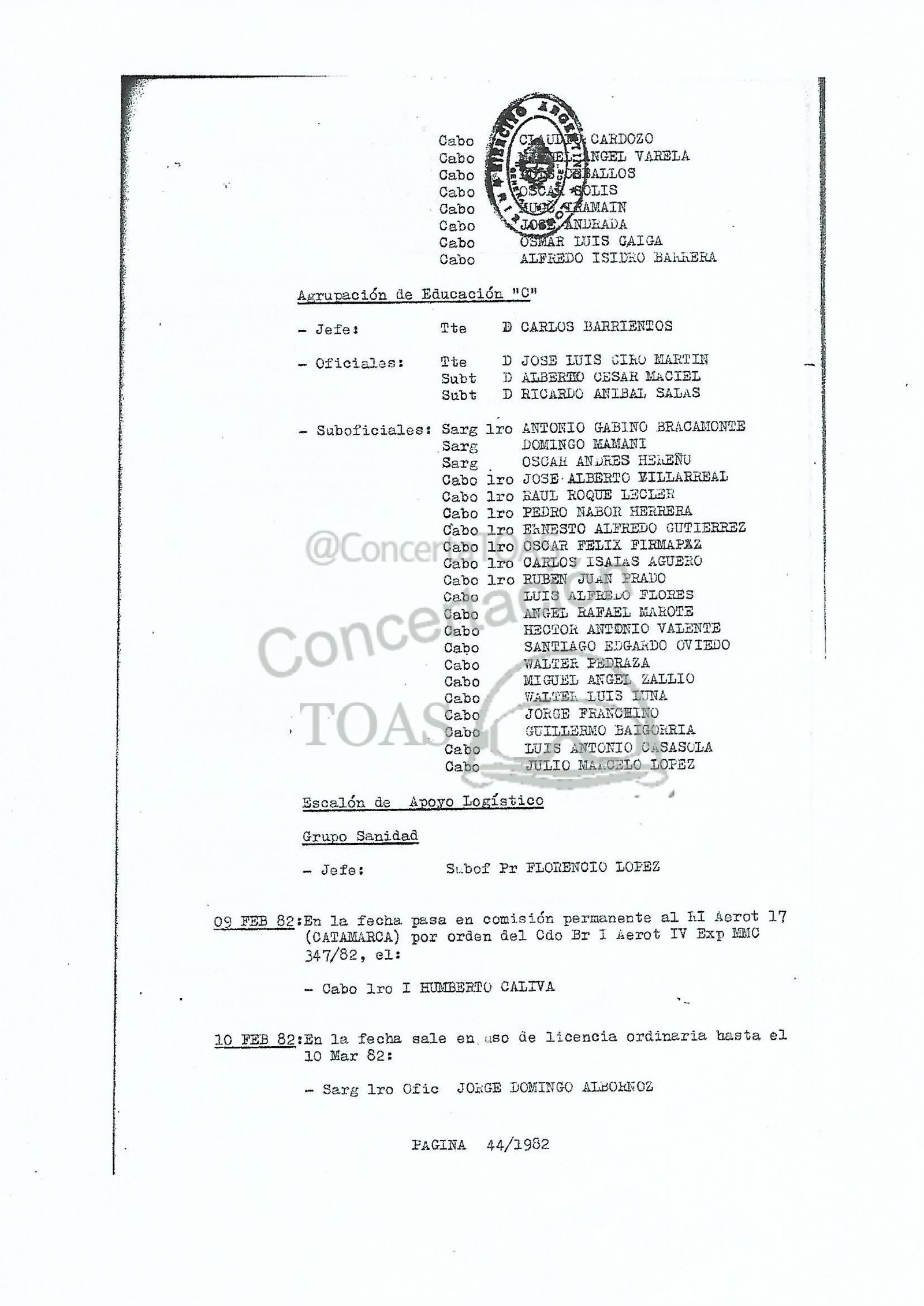 La Unidad ejecutará entre el.01l Ear y el 07 Mar 82 la