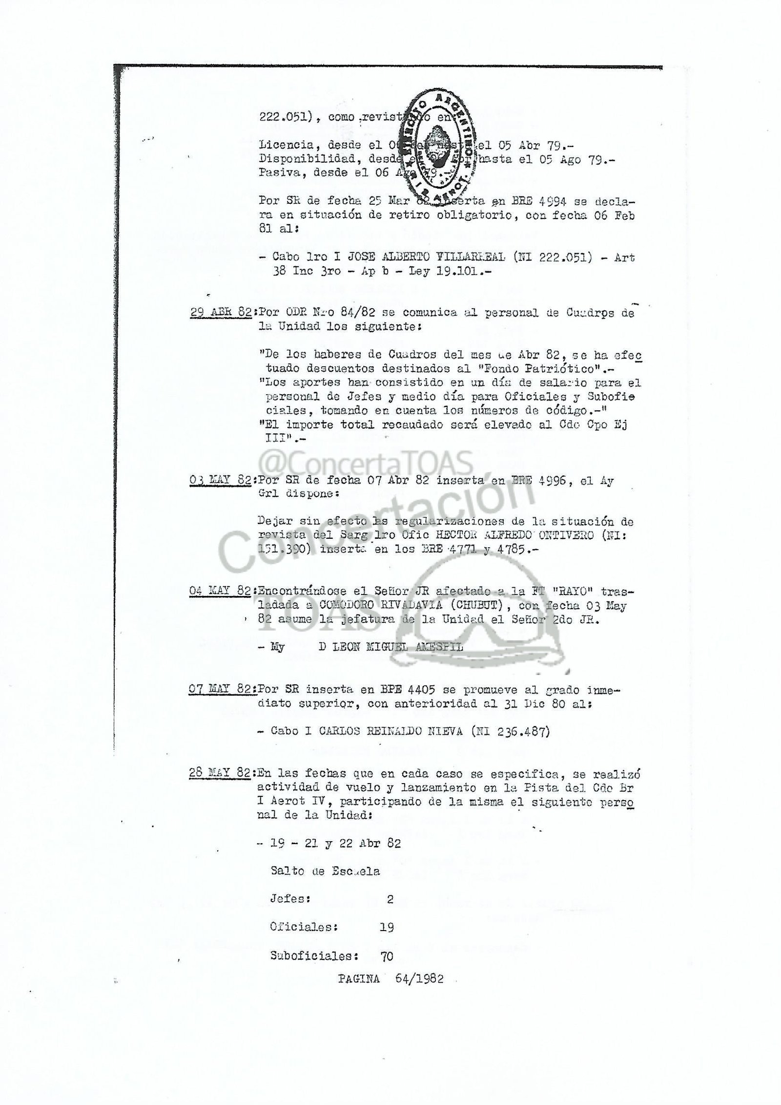 08 JUL 82:En la fecha se realiza en la ¿nidad una formación espe-