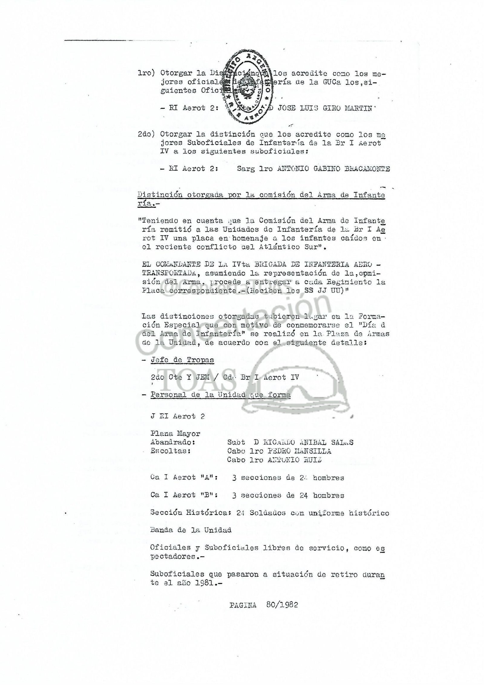 ficiales, Suboficiales y Sulúados de la Sección Intené