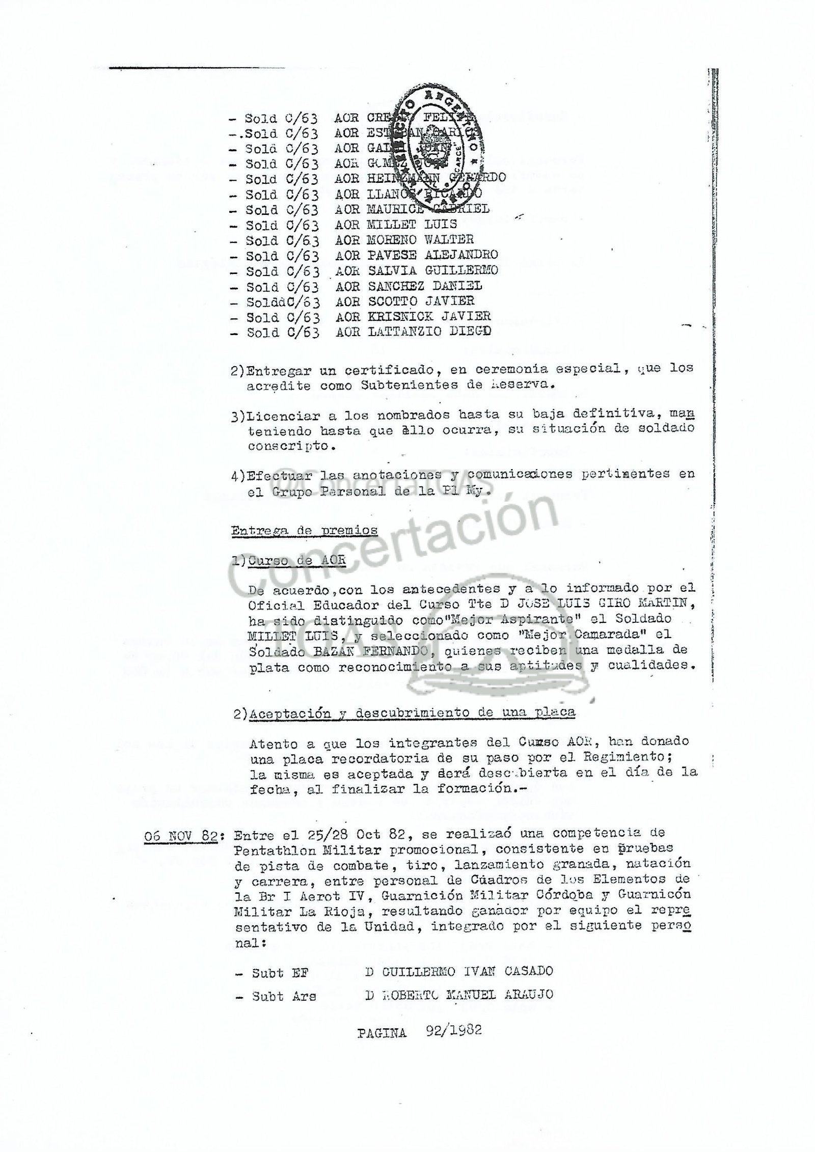 Con fecha 09 Nov 82 salió en comisión e la Localidad de